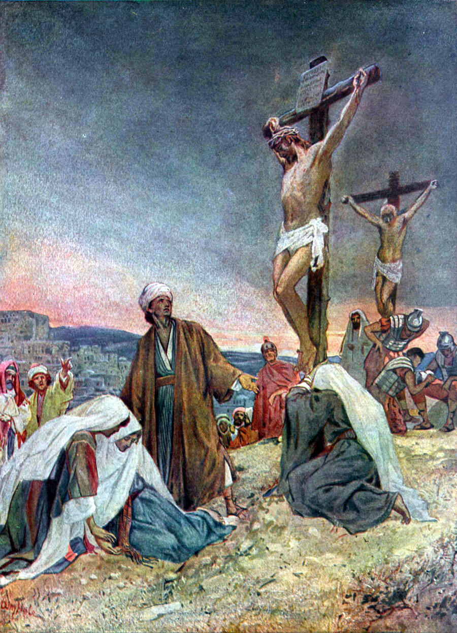Jesus hung on the Cross for three hours, and some of His poor heart-broken disciples, and great crowds of people, came and watched Him in His pain. Some faithful women who loved Jesus came also, and amongst them was Mary, His own mother.